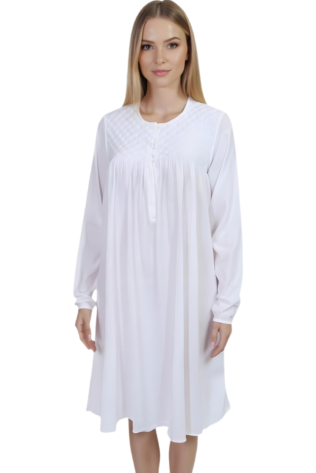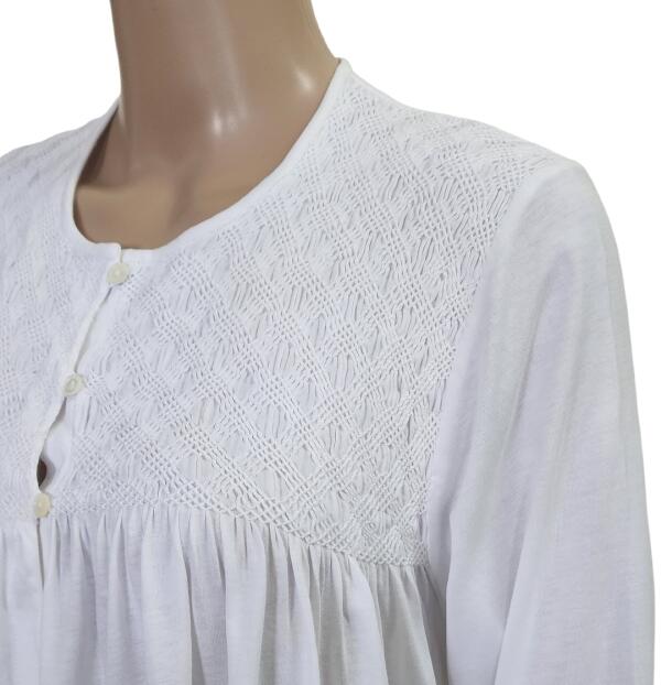 Long sleeve, short nightgown 38", hand smocked and embroidered.