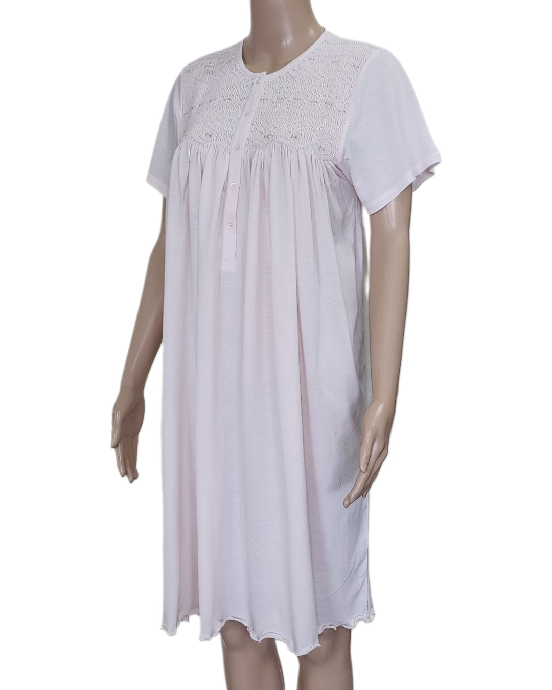 Hand smocked and embroidered short sleeved, short nightgown 38"
