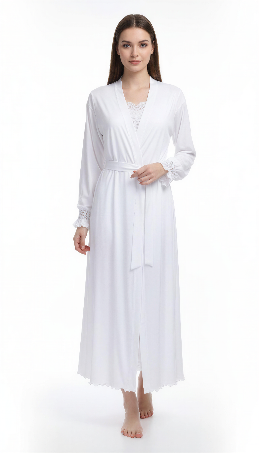 Long sleeve, long robe 50", smocked and lilac embroidered cuffs