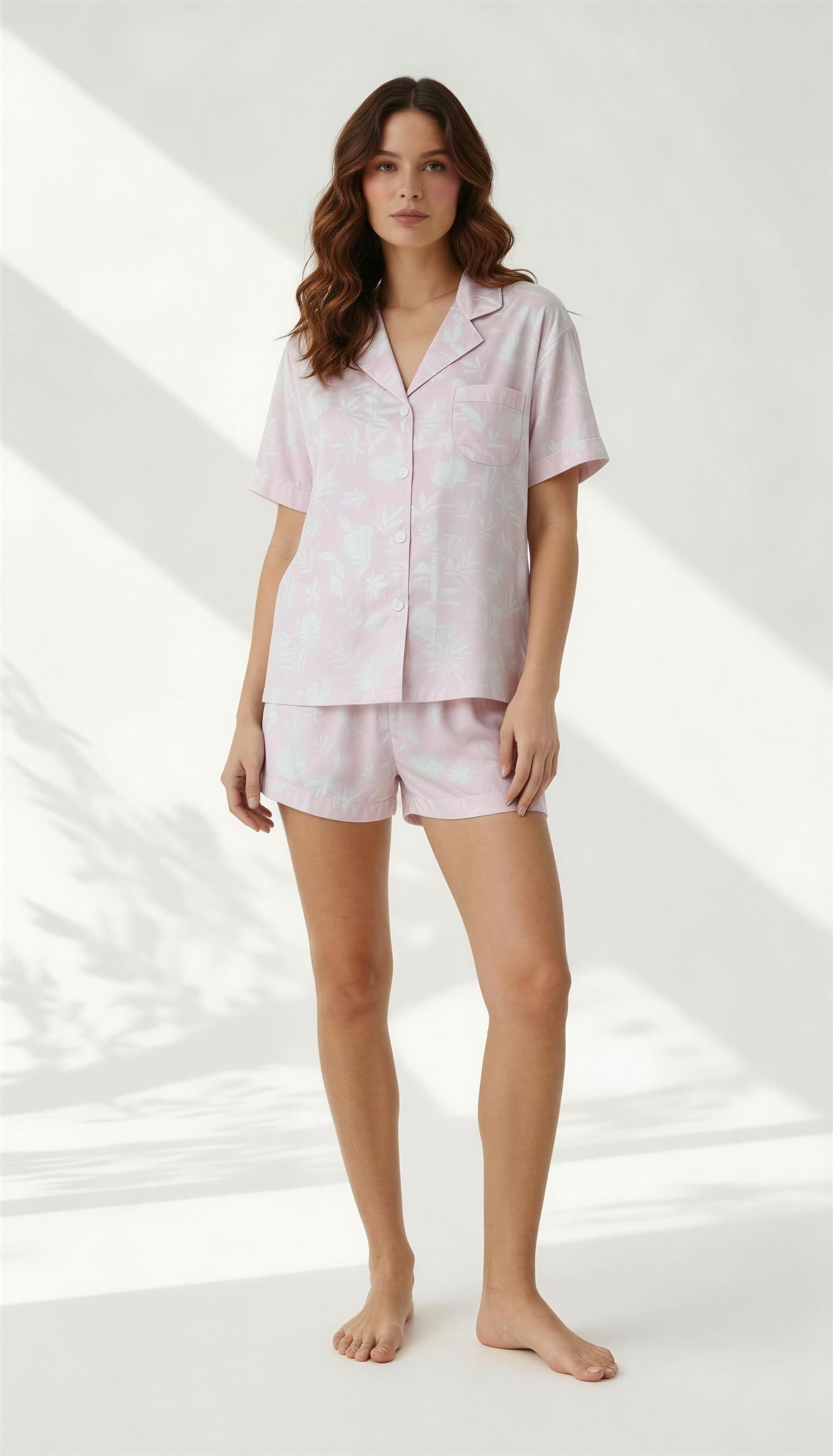 Two-piece short set, elastic waistband long pants/long sleeve shirt
